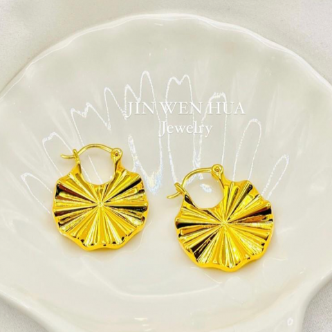 波浪造型耳環_黃金耳環